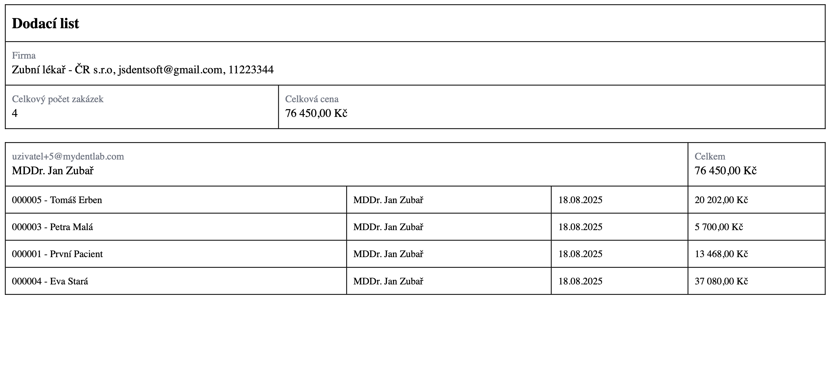 - Dodací list si můžete vytisknout přímo v aplikaci.