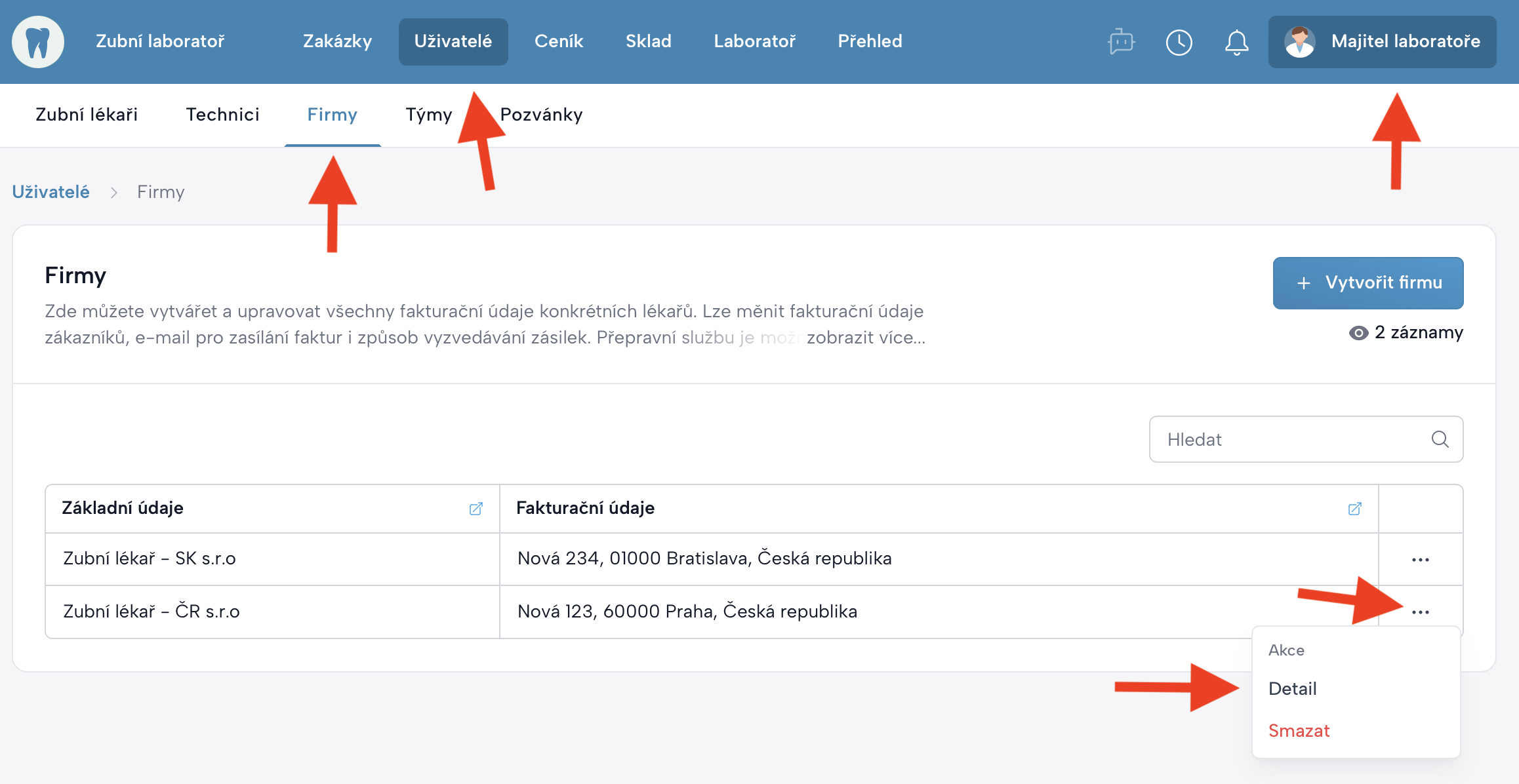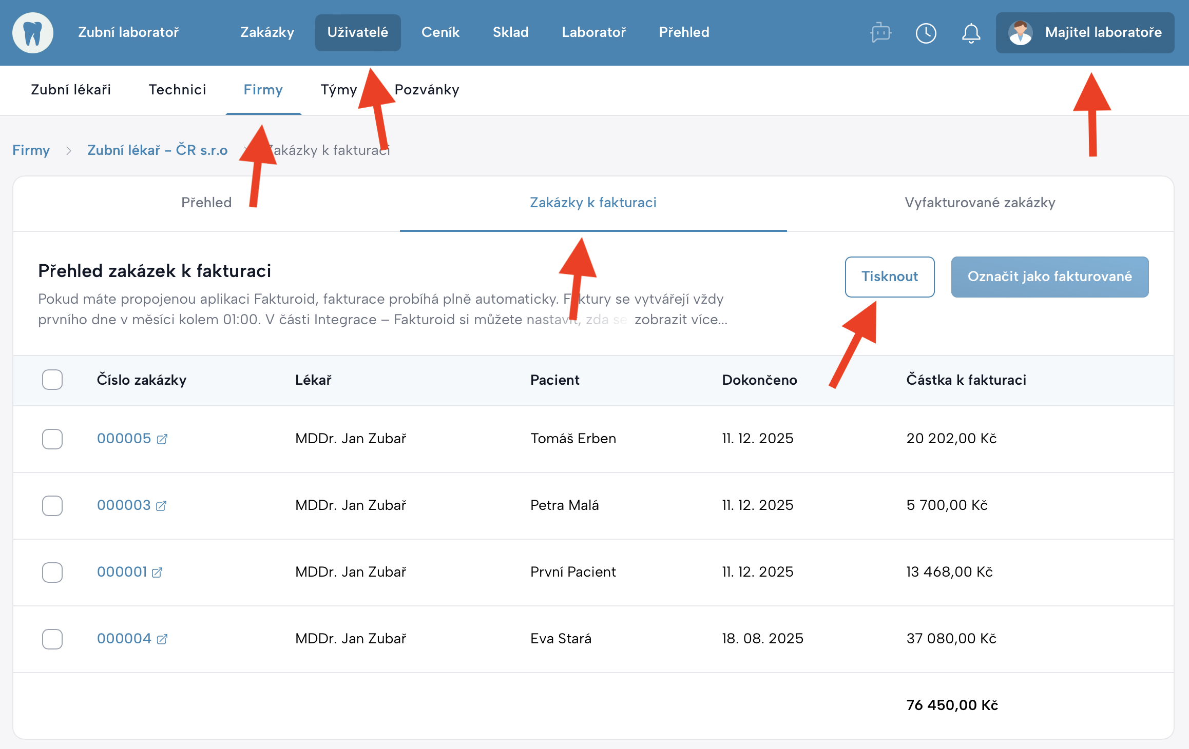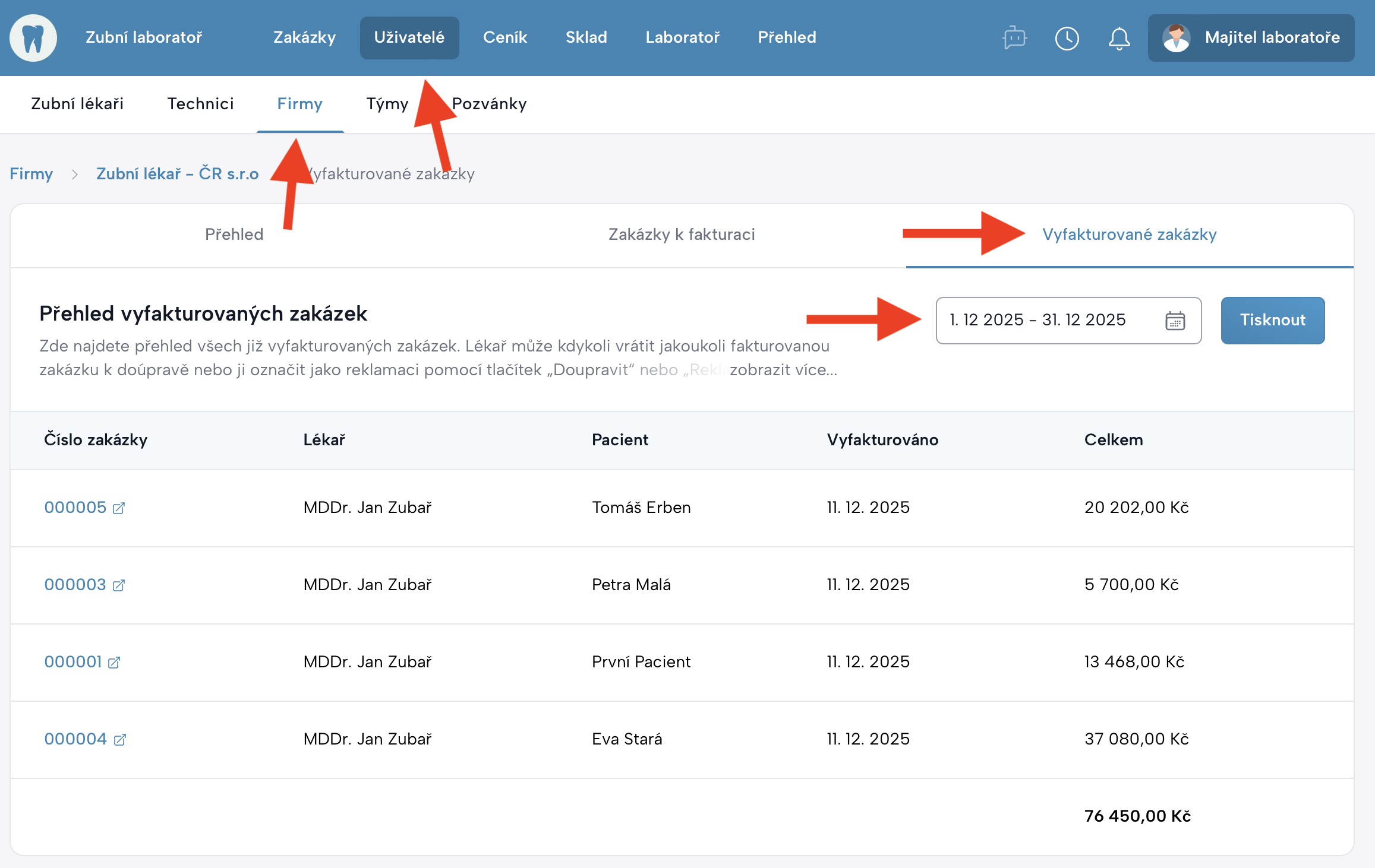 Uživatelé → Firmy → [Vybraná firma] → Vyfakturované zakázky