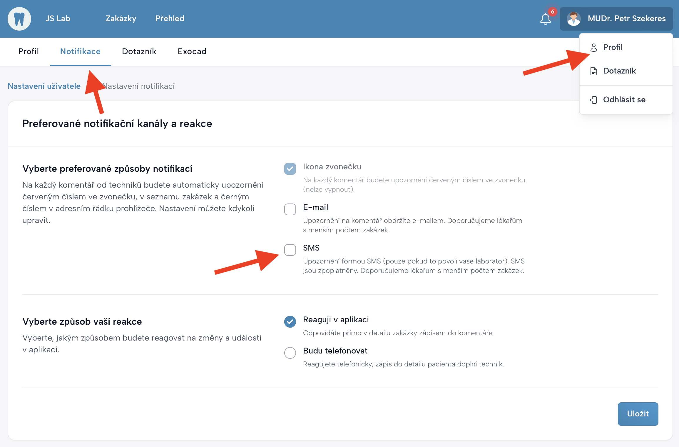 - Lékaři mohou SMS notifikace zapnout ve svém profilu