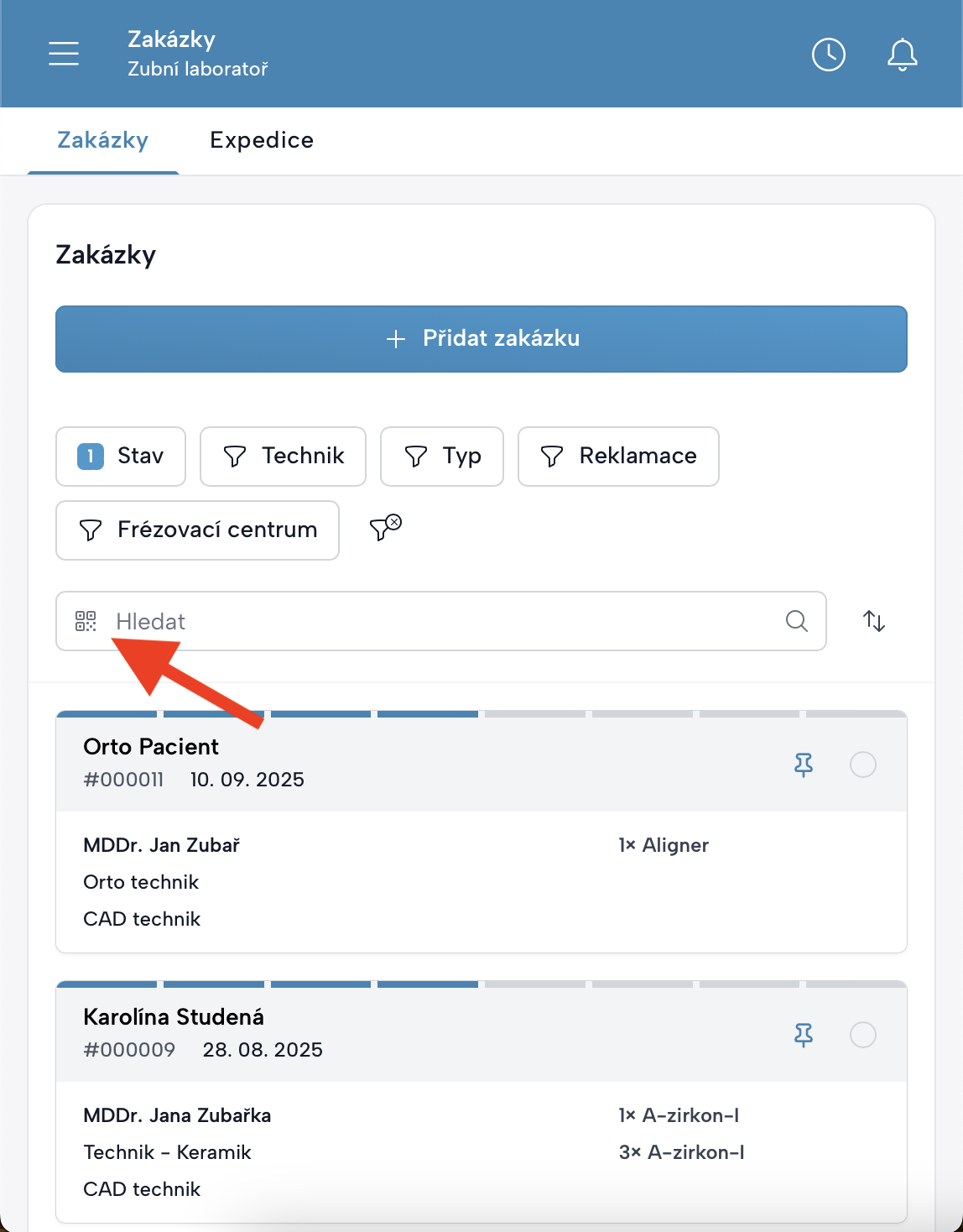 Vyhledání zakázky pomocí QR kódu