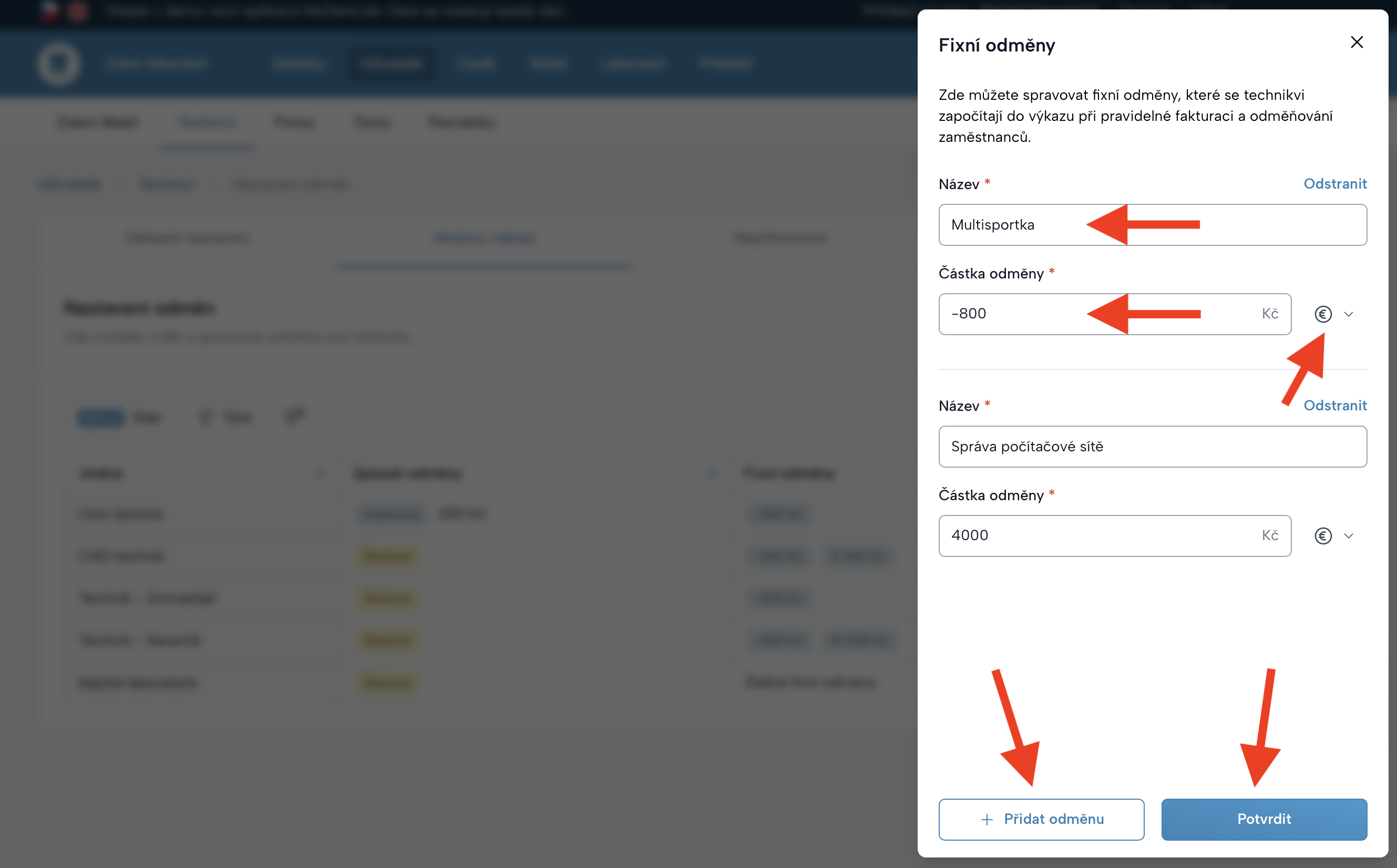 Ve sloupci Fixní odměny můžete technikovi nastavit: