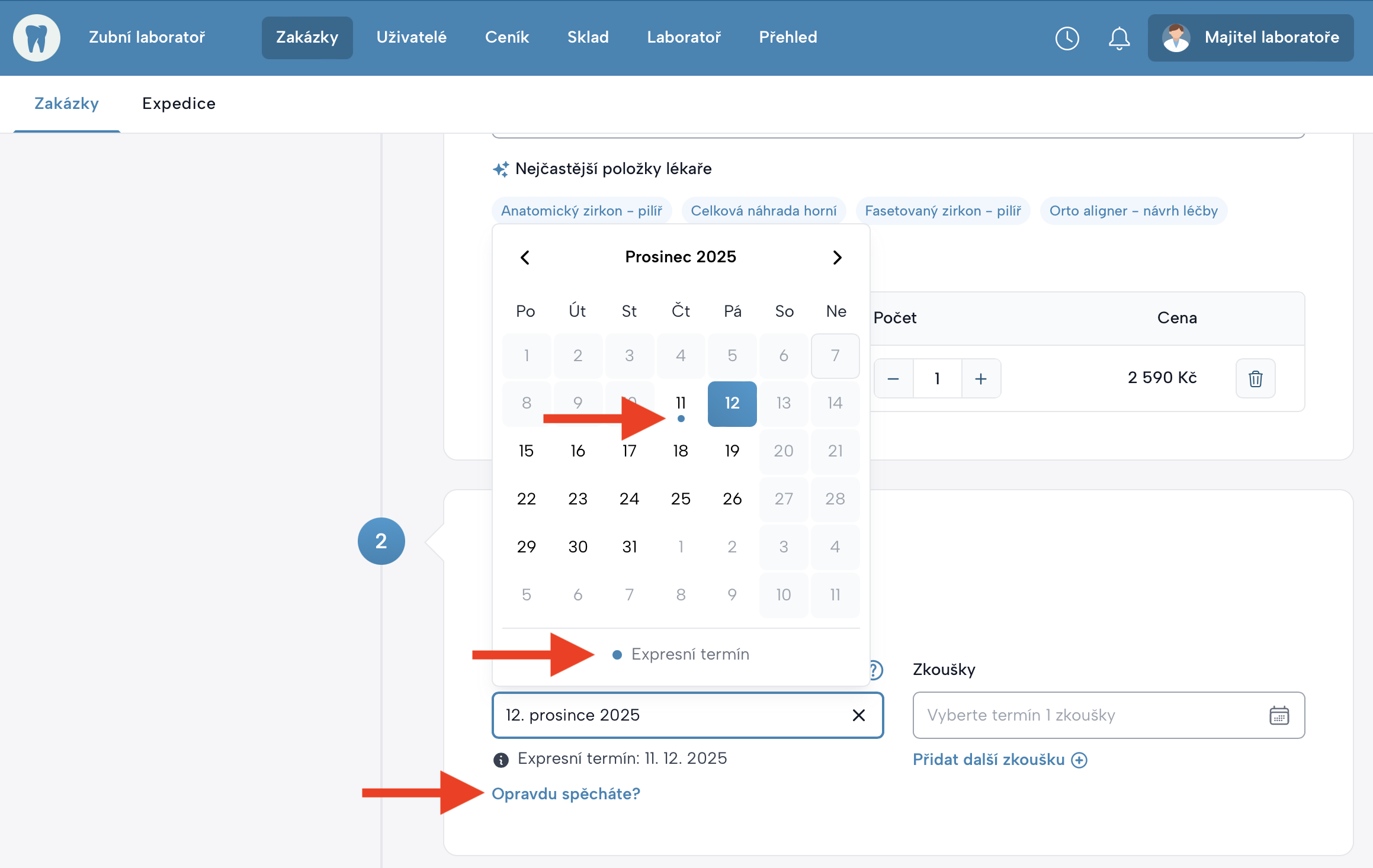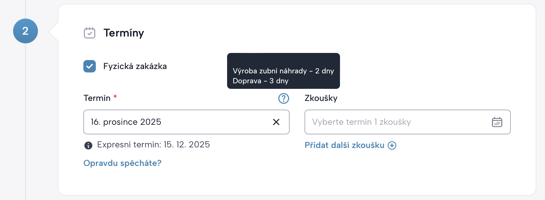 MyDentLab automaticky navrhuje nejkratší možný termín dokončení zakázky.