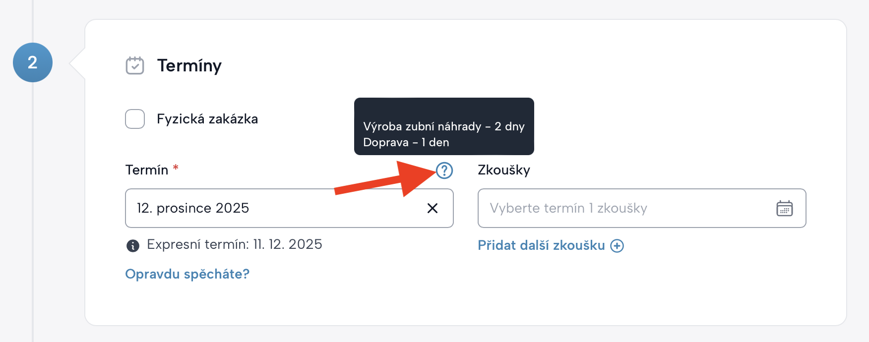 - zobrazí se expresní termín,